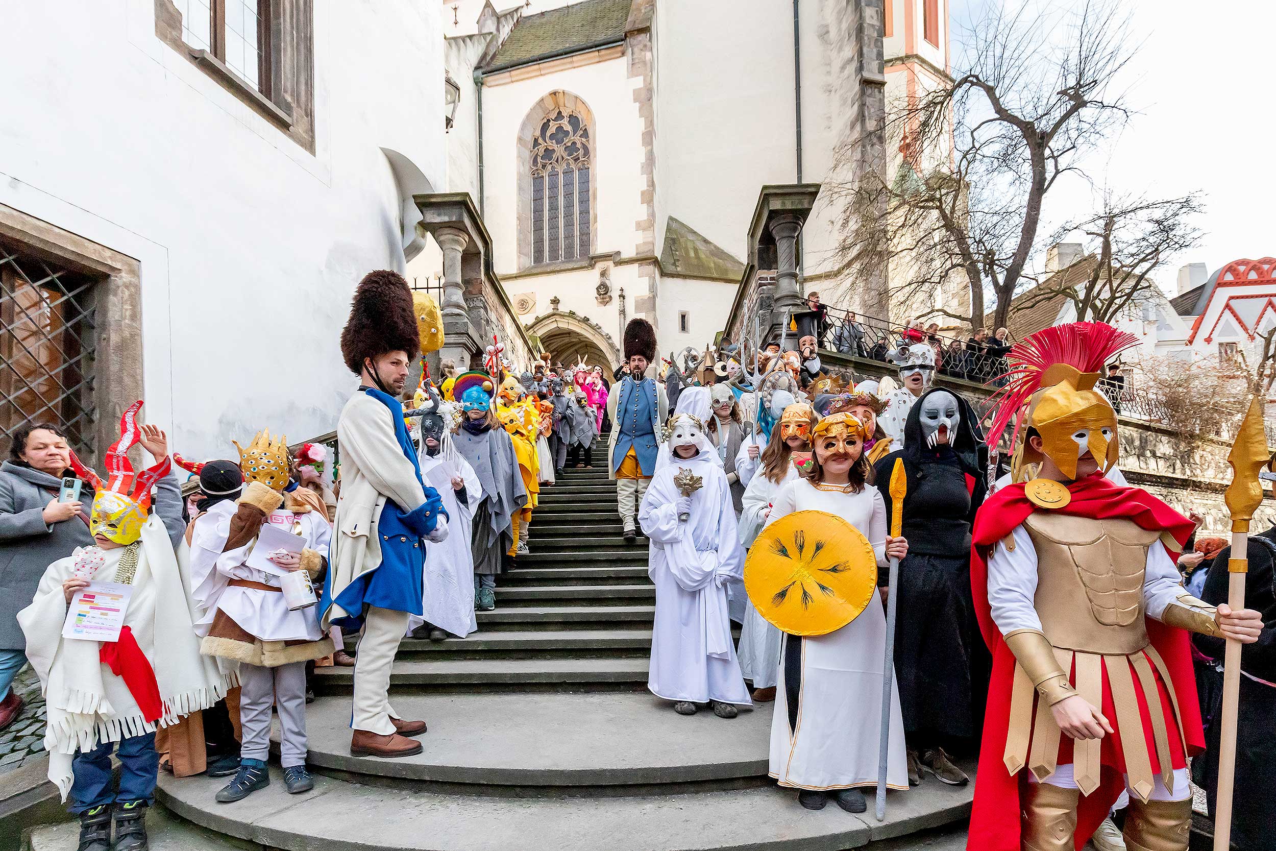 Centrum Českého Krumlova se v polovině února stane srdcem masopustního veselí. Návštěvníky čekají zabijačkové hody, tradiční růžičková koleda, průvod masek i karneval v knihovně.