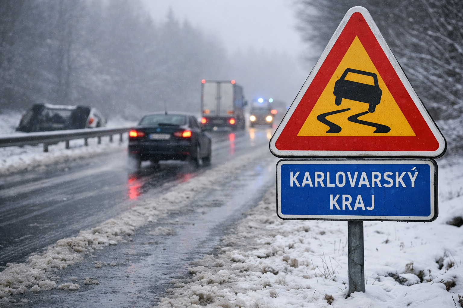 Silnice v Karlovarském kraji jsou po ošetření většinou mokré nebo se zbytky rozbředlého sněhu. Noční déšť ale mohl na některých místech vytvořit na podchlazeném povrchu ledovku. S oteplením a ustáváním deště by se situace na sinicích měla uklidnit. Silničáři i policisté upozorňují řidiče, aby byli opatrní.
