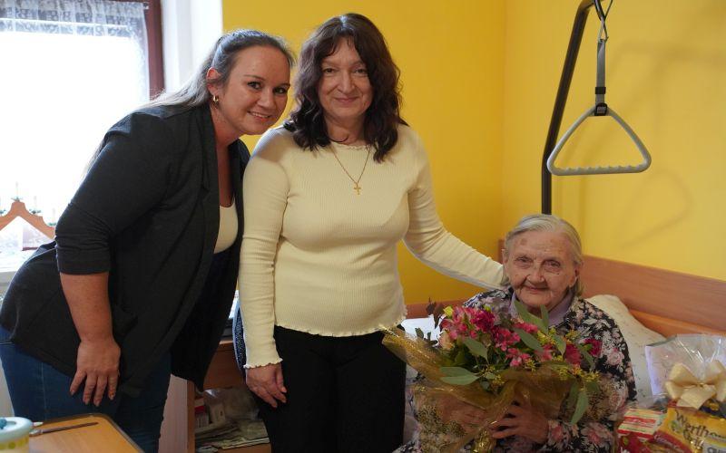 Paní Marie Sedláková oslavila 101. narozeniny. Do Hroznětína jí přijela popřát i radní pro oblast sociálních věcí Karlovarského kraje Ludmila Vocelková.