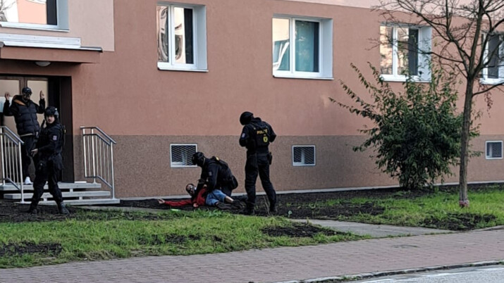 Zákrok se odehrál zhruba v 16 hodin v domě v Klidné ulici. K místu se sjelo několik policejních vozidel. Někteří policisté se cestou strojili do neprůstřelných vest a vybavovali se dlouhými zbraněmi. Na místě samotném pak razantně vyzvali dva muže, aby se vzdali. Následně je zadrželi a odvezli.