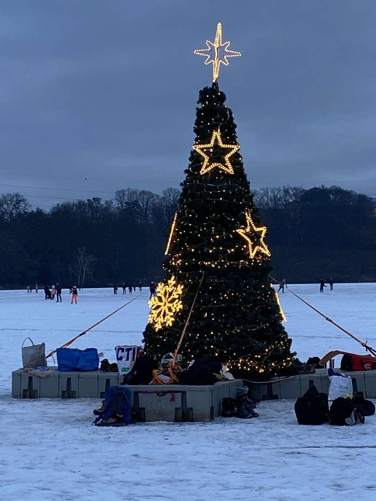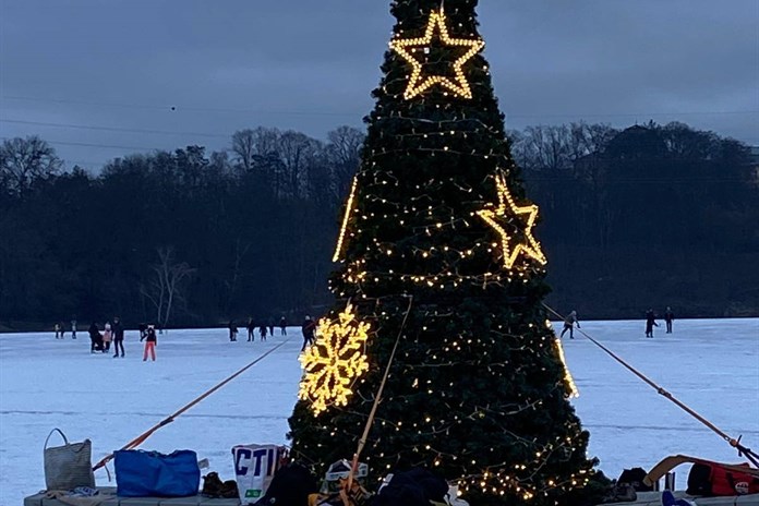 Zatímco většina domácností už dávno odnesla vánoční jehličí k popelnicím, na Borské přehradě se stále svítí. Unikátní plovoucí vánoční stromek se stal opět „rukojmím“ přírody. Kvůli zamrzlé hladině se ho zatím nepodařilo sklidit.