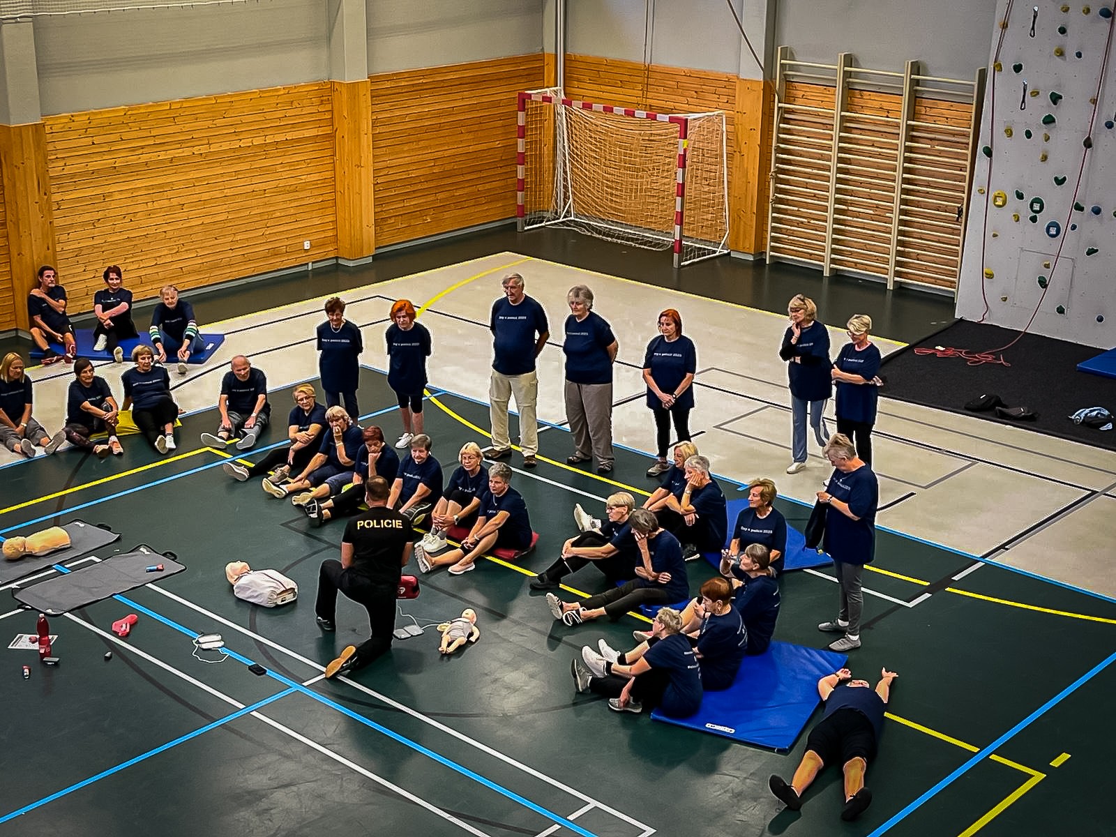 Neopomnělo se ani cvičení v tělocvičně, kde si účastníci vyzkoušeli pozici oběti a útočníka. S pomocí prostředků osobní ochrany se naučili základní obranné postupy a zjistili, že věk není překážkou, pokud jde o odvahu a odhodlání. Součástí programu byla také výuka první pomoci a zdravovědy. Senioři si procvičili resuscitaci, jak si poradit s krvácením a obecně, jak takové stresové situace zvládnout. Protože Šumava je ideálním místem pro pohyb v přírodě, nesměl chybět ani turistický program. V rámci cesty si senioři měli možnost otestovat orientaci v terénu, mapové dovednosti a spojit tak příjemné s užitečným – čerstvý vzduch, pohyb a pocit, že zvládnou poradit si i mimo město. Proběhla i práce s tzv. trauma body a také příprava evakuačního zavazadla – tedy věcí, které by si měl každý umět v krizové situaci rychle sbalit.