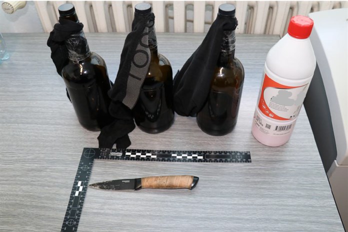 Muž podle policistů navíc stále vyhrožoval, že ublíží jejímu příteli. Policisté z obvodního oddělení Tachov ihned vyjeli na místo a agresora během deseti minut zadrželi. "Při osobní prohlídce jsme u něj kromě výše uvedených věcí nalezli i nůž, další 2 nádoby připomínající zápalné lahve a lahev s tekutým podpalovačem," uvedla Vršecká.