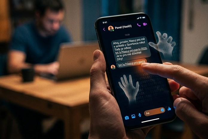 Celý mechanismus podvodu začíná zdánlivě nevinnou zprávou od známého kontaktu. Útočník, který již dříve ovládl účet někoho z vašich přátel, vám zašle odkaz s výzvou k hlasování v anketě – nejčastěji se týká sportovních, tanečních či jiných volnočasových soutěží.