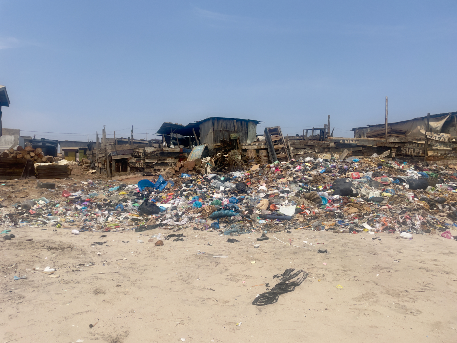 Slabá místa ghanské ekonomiky jsou na první pohled patrná. Stačí poodjet z centra Accry na předměstí a ocitnete se na jedné z největších skládek světa, kde mezi hořícími pneumatikami žijí lidé, pobíhají děti a nedaleko se odehrává zabíjačka. Nekonečná záplava odpadků, do nichž se místní noří a vytahují to, co je možné zpracovat nebo zpeněžit, definuje životní prostor několika desítek tisíc lidí. Největší hodnotu mají PET lahve, jejichž recyklací si můžete skutečně drobně vydělat. Pokud někdy budete v zemi jako je Ghana, NIKDY PETku nemačkejte, ani jinak udržitelně nedeformujte a věnujte ji někomu, kdo to ocení. Takového člověka rozhodně najdete na každém rohu. Silný zápach prosycuje vzduch na několik stovek metrů a jediné vysvobození přináší mořský vánek, jenž naštěstí v době mé návštěvy foukal zrovna dobrým směrem. V opačném případě by procházka vesnicí sousedící se skládkou byla jen těžko k vydržení, a to navzdory spektakulární pláži táhnoucí se několik stovek kilometrů podél ghanského pobřeží.