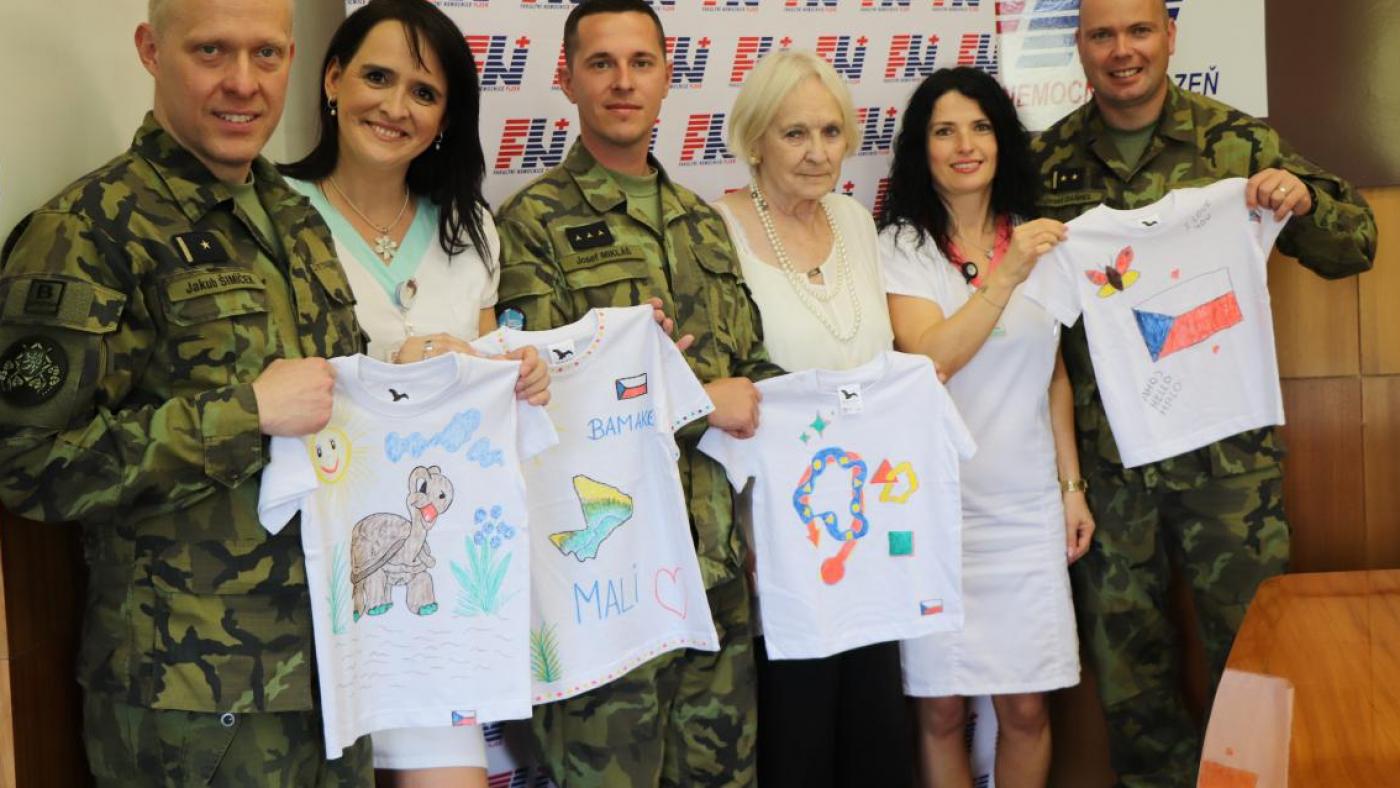 Malí pacienti z Dětské kliniky a dětského oddělení Psychiatrické kliniky Fakultní nemocnice v Plzni se zapojili do projektu dobrovolné humanitární a mírové organizace Stonožka. Více než 60 triček s originálními kresbami a osobními vzkazy putuje za pomoci českých vojáků do města Bamako v Mali v západní Africe.
