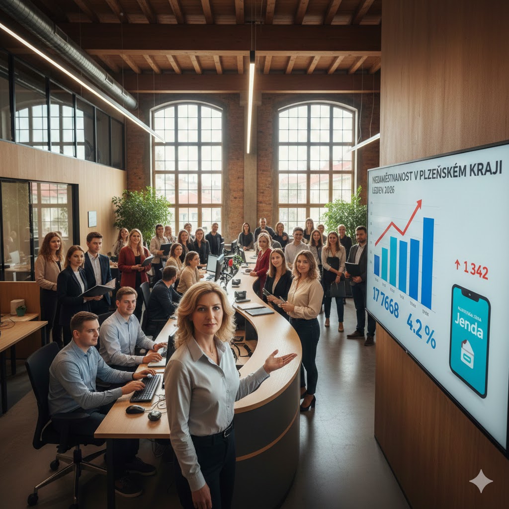 Začátek roku 2026 přinesl do Plzeňského kraje sezónní ochlazení trhu práce. Počet uchazečů o zaměstnání vzrostl o 1 342 osob, čímž celkový počet registrovaných klientů dosáhl hodnoty 17 668. Podíl nezaměstnaných osob se tak ustálil na 4,2 %.