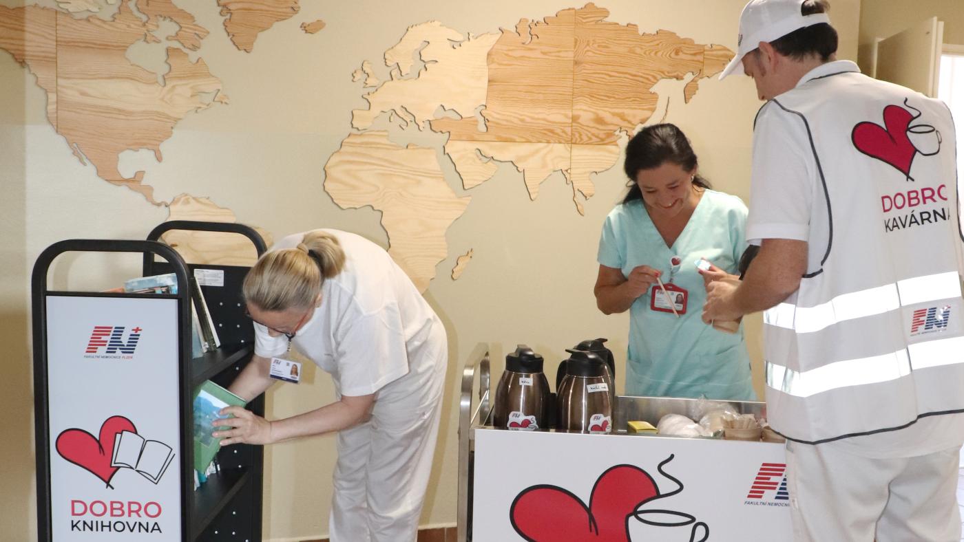 Zpestření v průběhu hospitalizace čeká na pacienty ve Fakultní nemocnici Plzeň. Ta spustila v letošním roce další dva nové dobrovolnické projekty s názvem Dobrokavárna a Dobroknihovna. Díky nim si mohou dát v mobilní kavárně šálek dobré kávy, čaje či půjčit knihu.