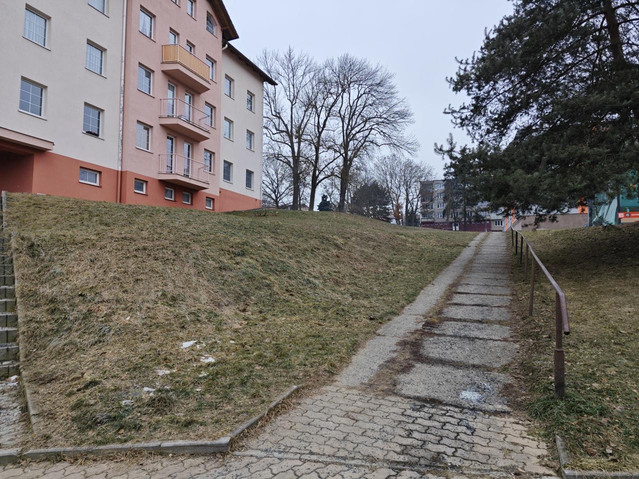 „V této lokalitě je starý chodník z panelů, který byl v budován v době výstavbě sídliště Kozinovo pole. Není příliš využíván, a tak přišel návrh Domažlických technických služeb a debata na radě města, zda by tento chodník neměl být odstraněn a zda by zde neměly býti vysázeny stromy, podobně jak se tomu stalo před zhruba šesti až sedmi lety, kdy byly vysazeny stromy v sousední navazující zahradě," popsal starosta Stanislav Antoš.