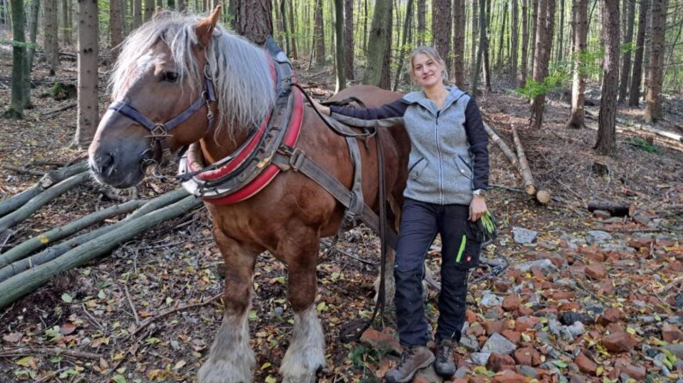 ŽELECHOVICE NAD DŘEVNICÍ - Podzimně pestře zbarvený les skýtá mnohá potěšení. V tomto případě nejde jen o úžasnou paletu barvících se a už už padajících listů. V hustém porostu se konalo jedno vcelku milé setkání. V plné a pilné práci při stahování dřeva v členitém terénu hustého lesního porostu mladá dáma a její dokonalý pomocník, statný hřebec Major.