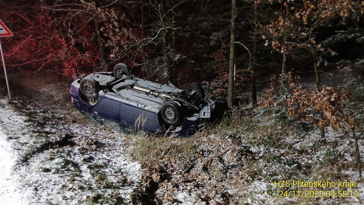 Nehody se na mokrých vozovkách staly například u Plzně, ve Vejprnicích či u Horních Kozolup na Tachovsku. Hasiči podle mluvčího Michala Holečka zasahovali také například u ranních nehod jednoho automobilu u obce Nový Dvůr na severním Plzeňsku, kde vozidlo skončilo mimo komunikaci na boku Nehoda se obešla bez zranění. Osobní auto skončilo po nehodě na střeše také mezi obcí Kucíny a Přešticemi na jižním Plzeňsku. Záchranáři převezli mladou ženu bez viditelných zranění na pozorování do nemocnice.