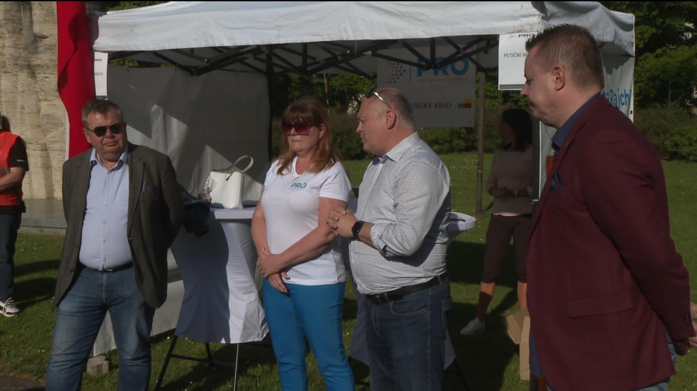 „Každý občan se teď může seznámit na petičním stánku s tím, proč by měla vláda Petra Fialy dostat takovou výpověď. Samozřejmě, je to symbolická věc. Nečekáme, že by pan Fiala hodil ručník do ringu, sbalil kufry a dobrovolně opustil Strakovu akademii, ale je to součást takové širší kampaně,“ řekl Michal Hašek, kandidující za stranu do Evropského parlamentu. Předseda strany PRO v Plzeňském kraji Daniel Šváb ho doplnil: „Nejvíce lidi zajímá hlavně ta nepetiční část, a to je vlastně dopis vládě Petra Fialy, takzvaná výpověď vládě Petra Fialy, protože všichni už toho mají dost, toho co za dva roky nynější vláda napáchala. Proto jsou tady ty alternativní strany, ty nové, ty opoziční, zatím neparlamentní. Doufáme, že se nám povede prorazit. Bude to pro nás taková velká odrazová čára, odrazový můstek.“