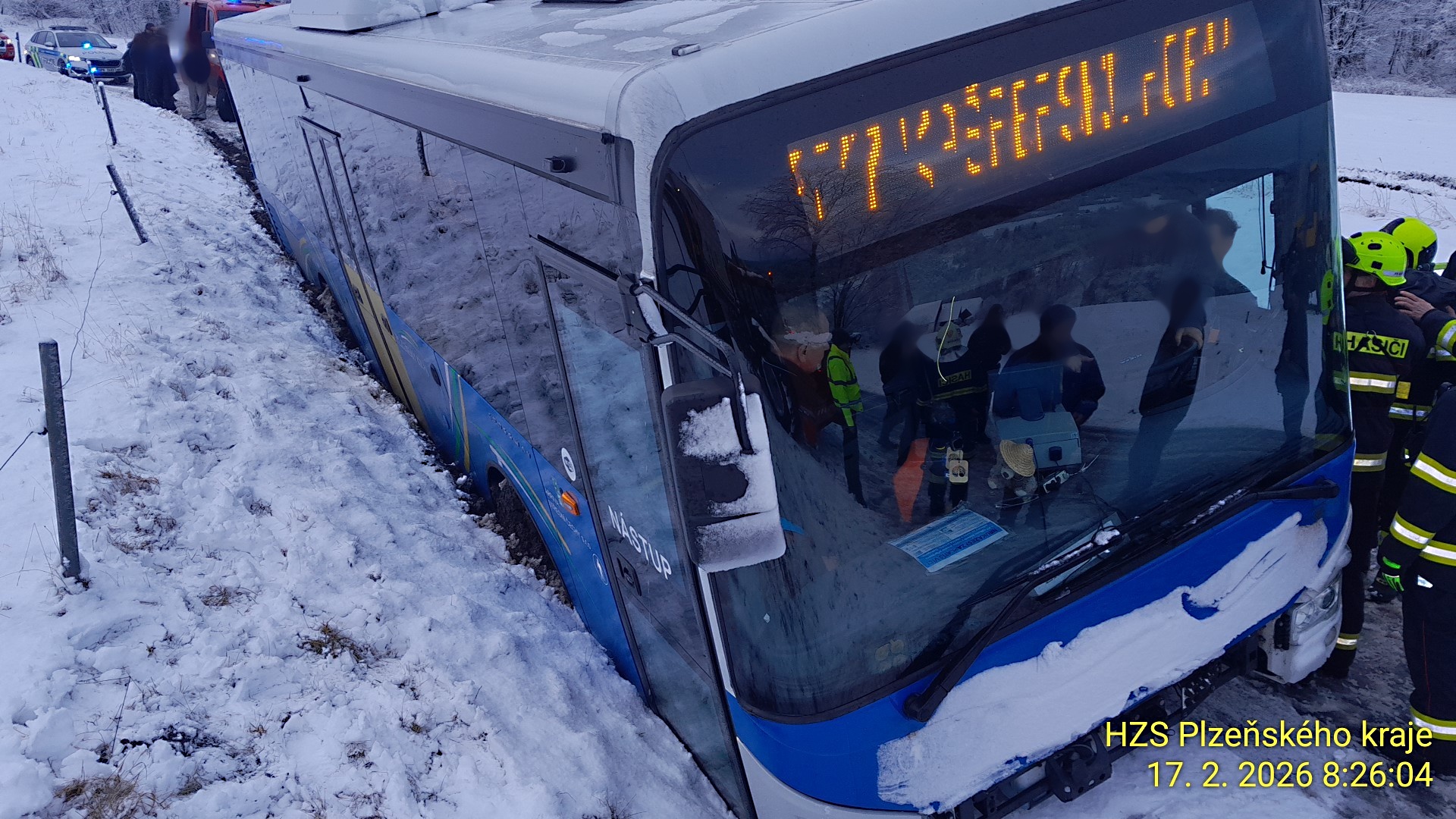 K nehodě vyjížděly záchranné složky před 8. hodinou ranní. Jelikož autobus zůstal přímo na straně vchodových dveří, museli záchranáři a svědci okamžitě najít jinou únikovou cestu. "Děti dostáváme ven přes okénko u řidiče," uvedl mluvčí krajských hasičů Petr Poncar.
