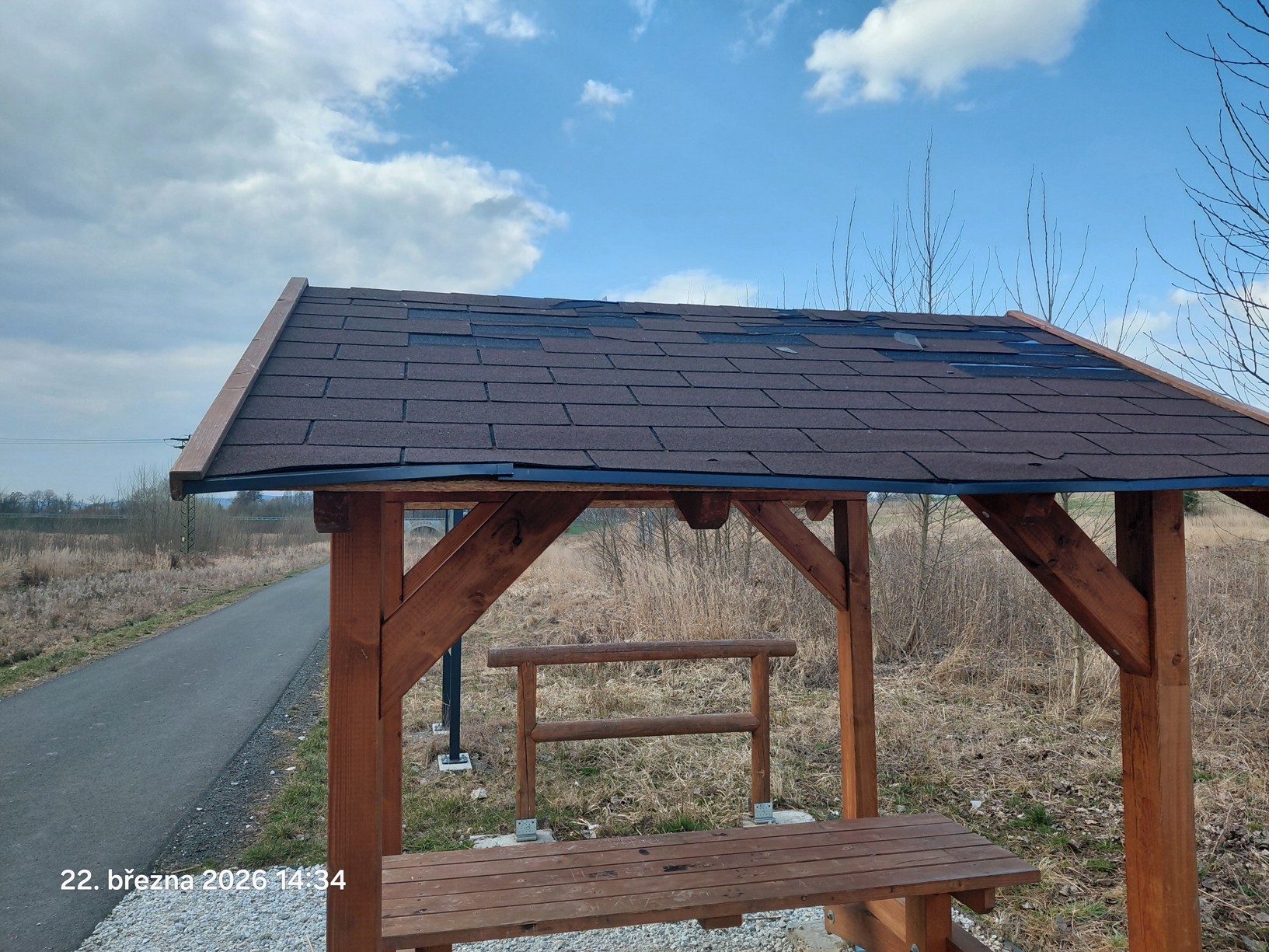 Není to přitom tak dlouho, co tato odpočinková zóna začala sloužit veřejnosti. Přístřešek byl v lokalitě instalován teprve v roce 2024 jako součást modernizace zázemí pro cyklisty a pěší. Nyní je výrazně poničen.