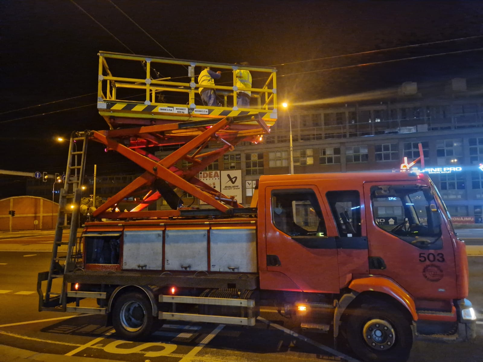 „Jsou vybaveni reflexními vestami a montérkami s vysokou viditelností a reflexními pruhy. Na hlavách ochranné přilby, svítilny čelovky, trolejové vedení nasvěcuje přenosný akumulátorový LED reflektor. Překážka na silnici je označena majáky, světelnou alejí na vozidlech a přenosnými kužely. Někdy je nutné řídit provoz projíždějících aut i přímými pokyny pracovníků,“ přiblížil náročnou práci techniků mluvčí DSZO Zdeněk Dvořák.
