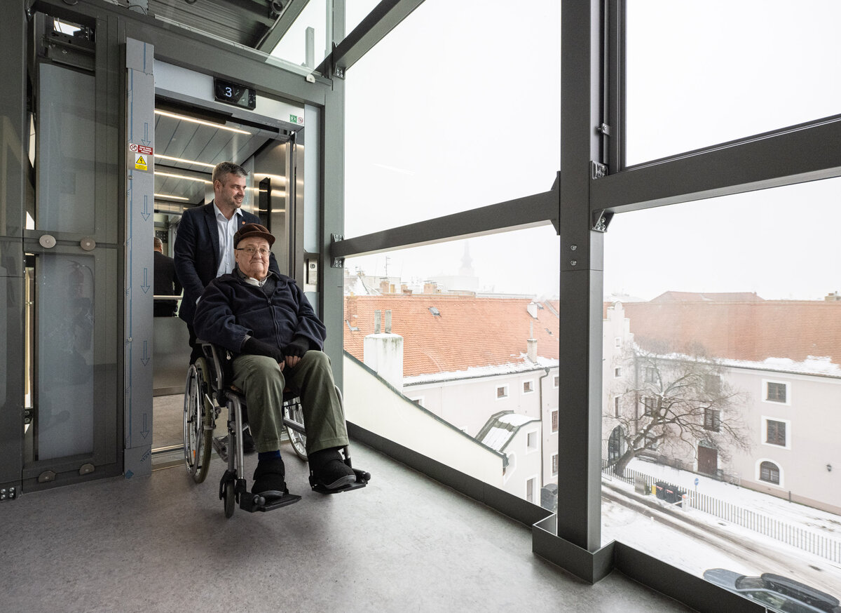 Podle starosty nebylo nalezení vhodného řešení jednoduché. „Opakovaně jsme projekt konzultovali s památkáři a podařilo se najít přijatelné řešení, které respektuje historický charakter budovy. Věřím, že výtah uvítají všichni, kteří mají s pohybem po schodech potíže,“ doplnil Tomáš Opatrný.