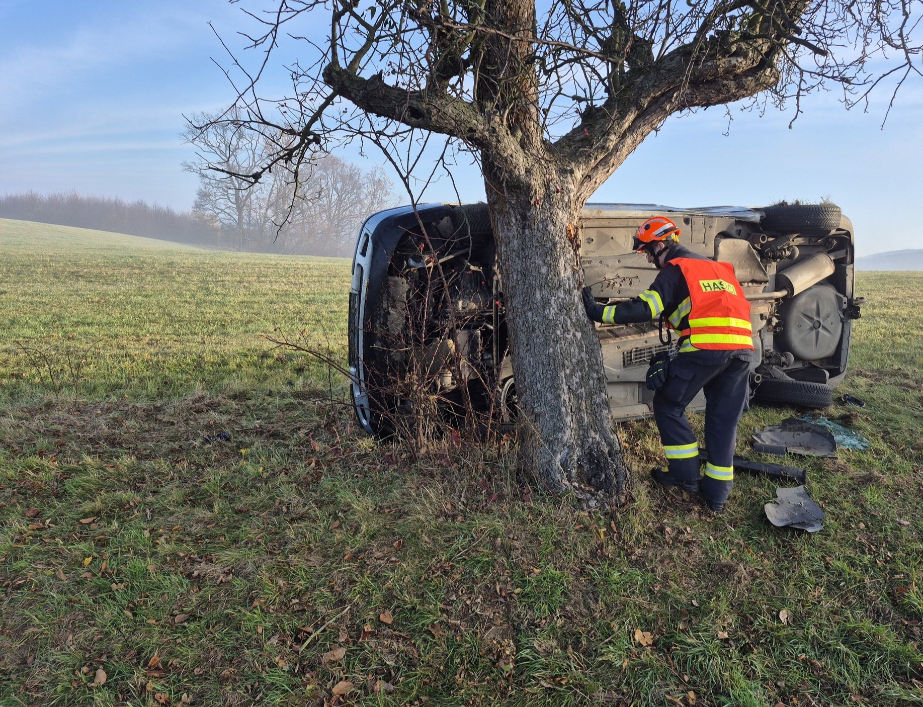 „Po příjezdu na místo velitel zásahu potvrdil nehodu jednoho auta, které sjelo ze silnice a skončilo na boku na okraji pole. Řidička vyvázla bez zranění,“ informovala mluvčí Hasičského záchranného sboru Zlínského kraje Lucie Javoříková.