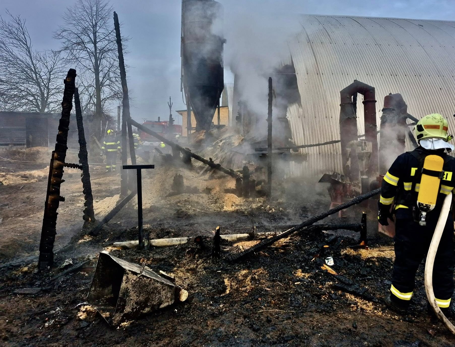 Plameny zachvátily sklad s pilinami