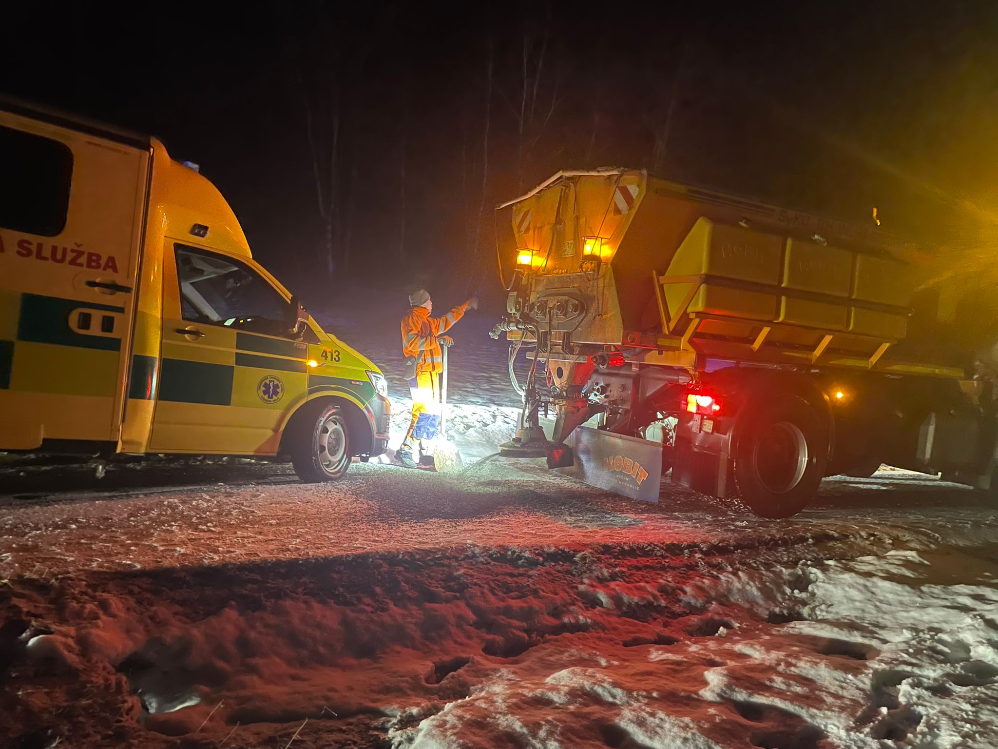 „Členové Horské služby bezpečně dopravili naše záchranáře k pacientovi, silničáři mezi tím zabezpečili komunikaci tak, aby byla bezpečně sjízdná pro náš sanitní vůz,“ přiblížila situaci Netopilová Sluštíková.