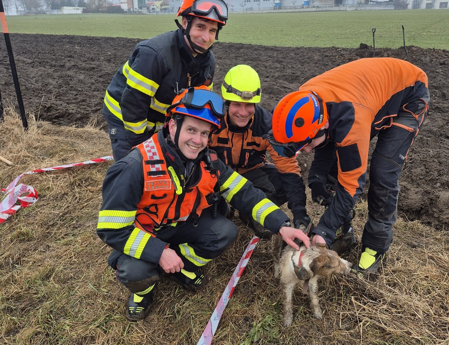 Chlupáč nakonec putoval za svou majitelkou a hasiči zpátky k lopatám, výkop totiž bylo třeba zase pečlivě zahrnout. Nakonec se i zachránci mohli vrátit na své základny.