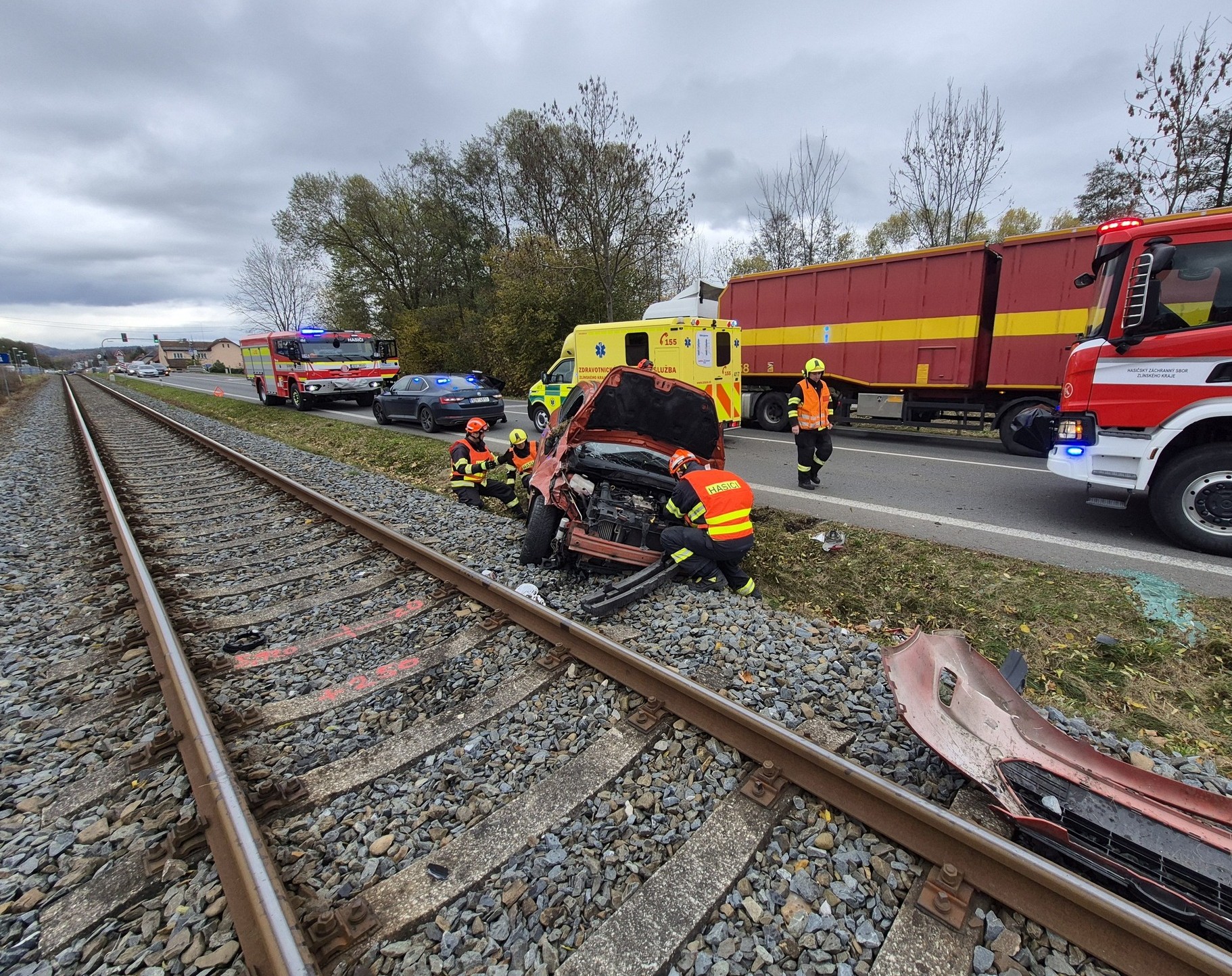 „Při příjezdu jednotek byla zraněná osoba v péči posádky zdravotnické záchranné služby. Protože vozidlo zasahovalo do kolejiště byl zastaven provoz vlaků na trati,“ informoval o nehodě mluvčí Hasičského záchranného sboru Zlínského kraje David Martinec.