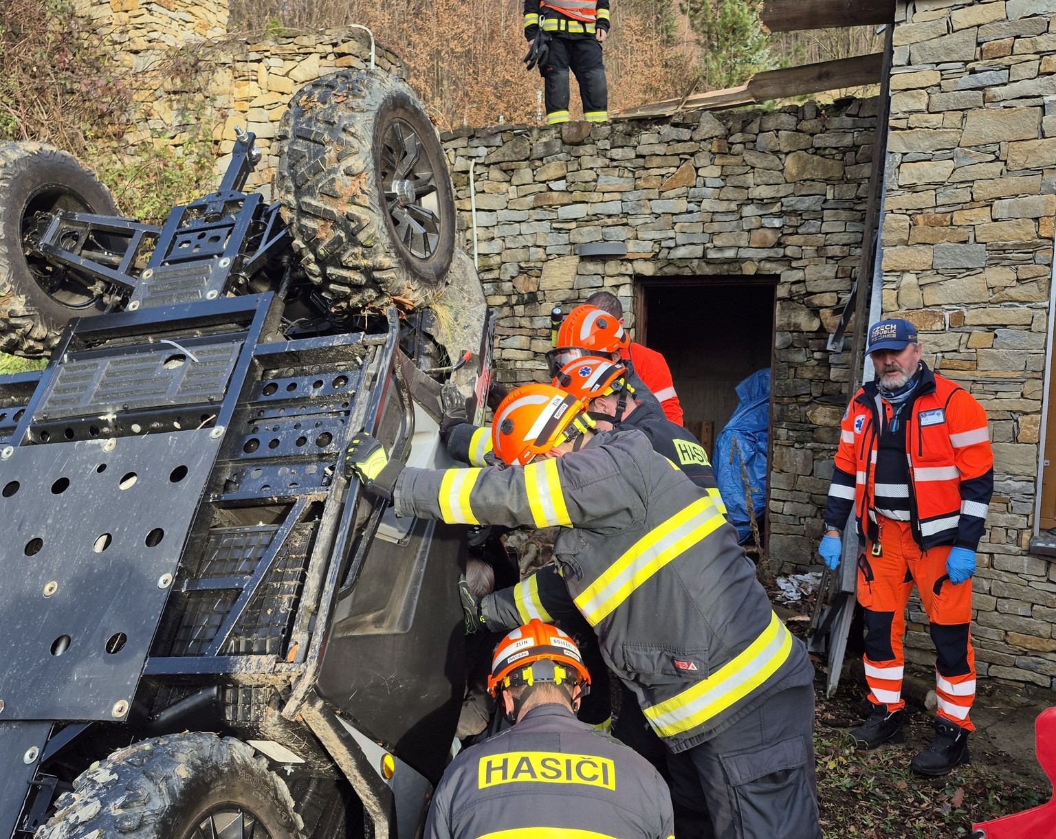 Hasiči následně zajistili čtyřkolku proti pohybu, aby nedošlo k dalšímu ohrožení.